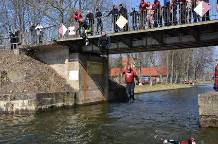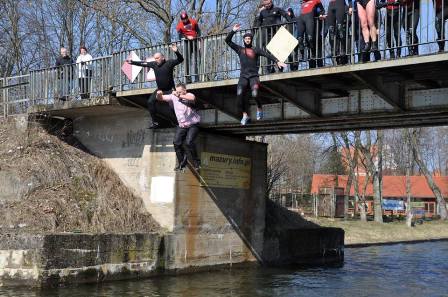 Tegoroczna edycja organizowanych przez Klub Płetwonurków Płetwal "Skoków z mostów" na długo pozostanie w pamięci uczestników i widzów. Nie zawiodła gwarantowana na Mazurach pogoda. Było nas wyjątkowo dużo, za co serdecznie wszystkim uczestnikom dziękujemy. Rozmach imprezy zaskoczył wszystkich, nad kanałem trudno było znaleźć miejsce "stojące". 30 przygotowanych na tę imprezę okolicznościowych koszulek rozeszło się w oka mgnieniu. Gorące podziękowania za profesjonalny przegląd terenu pod mostami pragniemy złożyć na ręce nurków z PSP w Giżycku. Nad bezpieczeństwem od strony wody czuwali niezawodni Ratownicy Giżyckiego MOPR , za co również ogromne podziękowania. Dziękujemy również publiczności - to dla Was tak ładnie skakaliśmy!