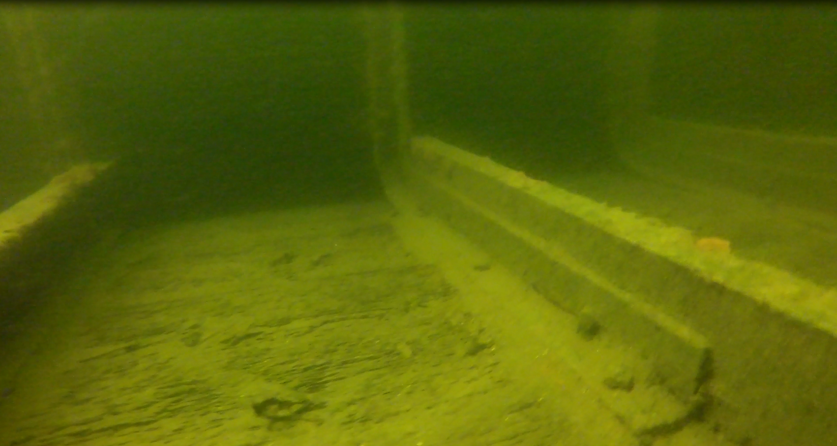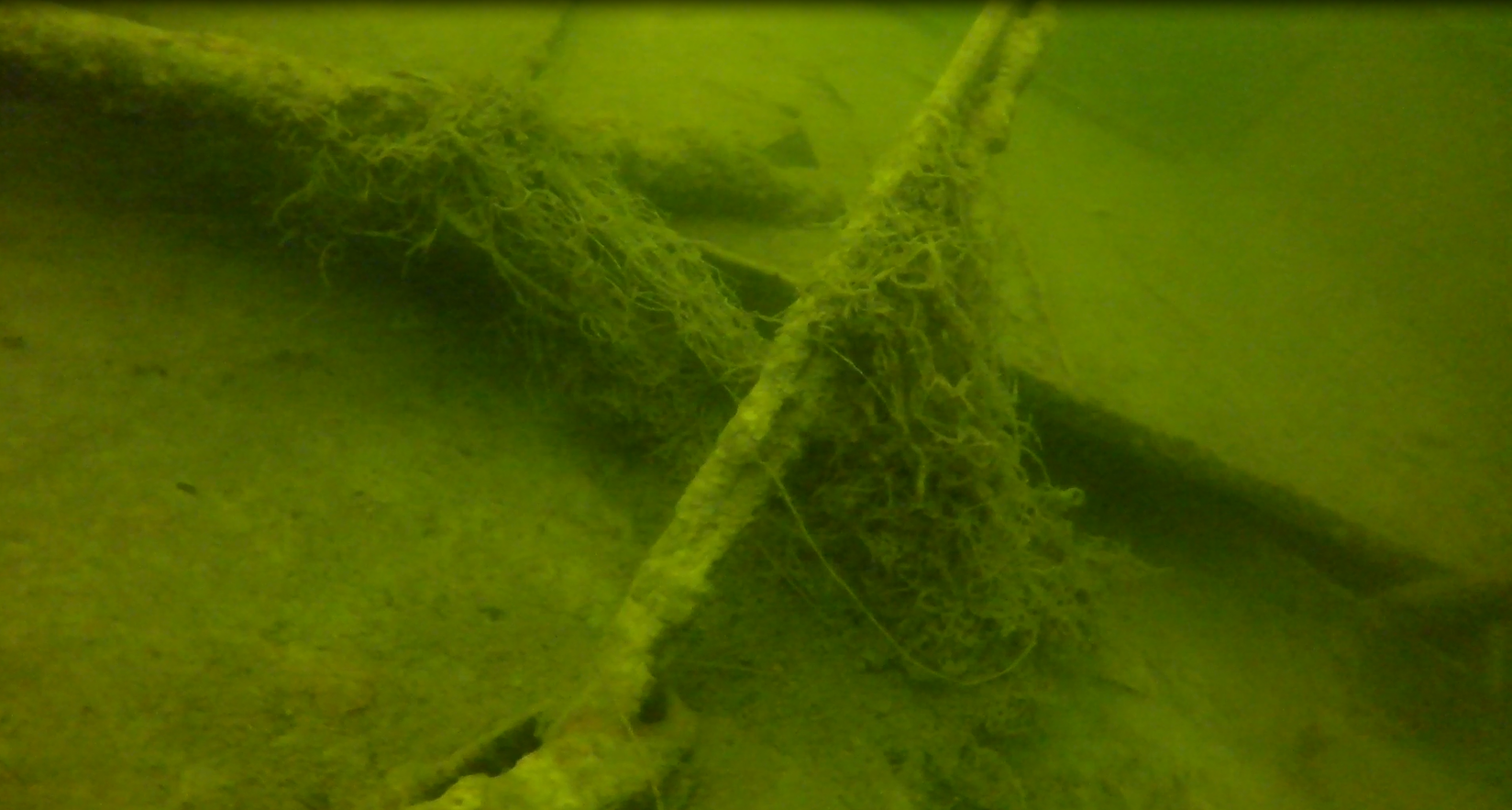 O tym, że miejsce zalegania wraku jest „komuś” znane zorientowałem się już pod wodą. Jak na miejsce zalegania, powinien być cały w żyłkach. Tymczasem żyłek było może kilka a jedynie z rufy w kierunku jeziora ciągnął się spętany warkocz siatki. Już pod wodą nie dawało mi spokoju pytanie: kto wiedział wcześniej i jak udało mu się utrzymać to w tajemnicy?